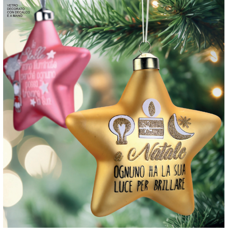 Un elemento distintivo è la frase caratteristica presente su ogni stella. Infatti, ogni pezzo porta parole dedicate a pace, speranza o gioia natalizia. Inoltre, la frase aggiunge un valore emotivo che arricchisce l’oggetto. Di conseguenza, la stella non è solo un addobbo, ma un messaggio personale. Tuttavia, il testo resta discreto e perfettamente integrato nel design.